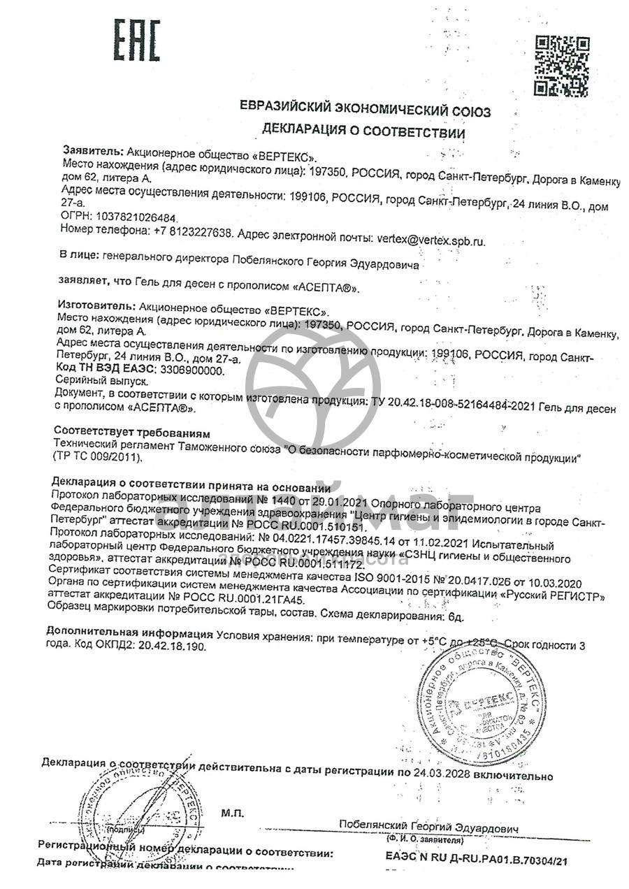 - Чтобы купить Гель для десен Асепта с прополисом совершите всего несколько шагов: укажите количество продукта и нажмите на кнопку «Купить».