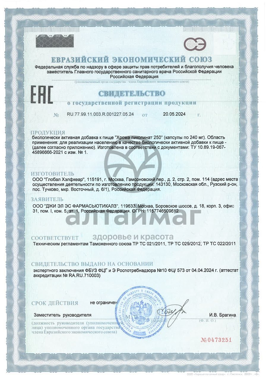 Есть вопросы по товару "Хрома пиколинат БАД GLS 90 капсул"?