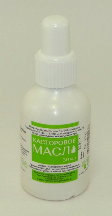 Для усиления роста волос готовят раствор, состоящий из 10 г касторового масла и 100 мл 96% спирта этилового, который втирают в кожу головы.