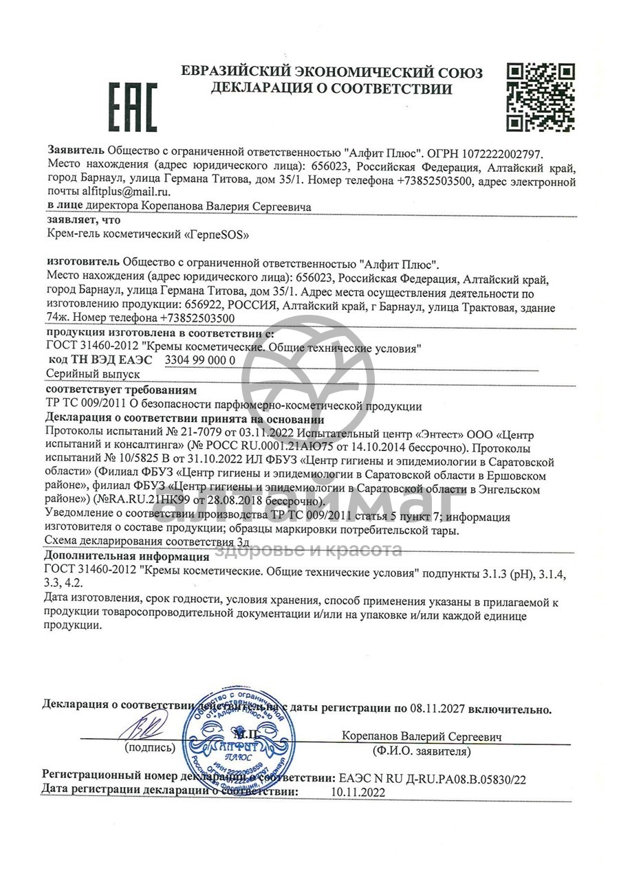 - Купите Крем-гель Герпеsos Алфит 5мл в Брянске по доступной цене 151 ₽ с доставкой на дом или заберите Ваш заказ в Брянске из ближайшего пункта выдачи, сделав заказ на AltaiMag.ru.